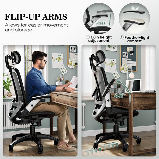 Ergonomic Office Chair with Adjustable Flip Up Armrests and Headrest