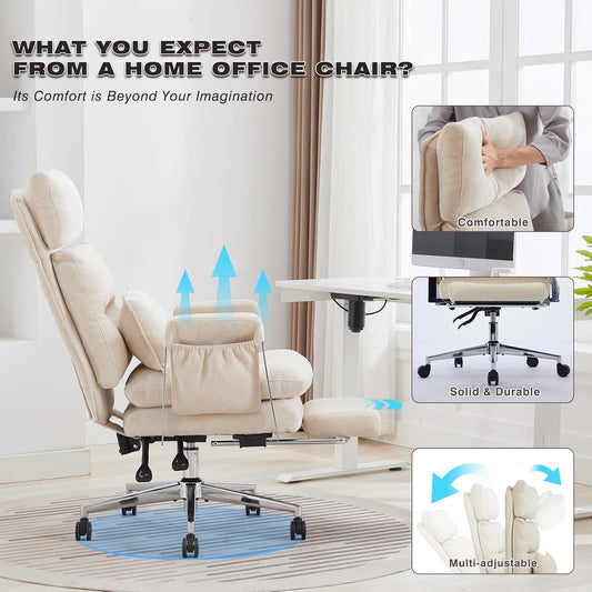 Large High Fabric Computer Chair with Footrest, Spring Cushion and Lumbar Support